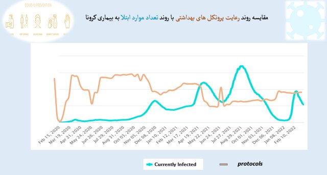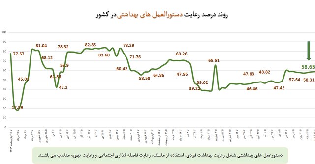 با این حال اما، بر اساس اعلام معاونت بهداشت وزارت بهداشت، میزان رعایت پروتکلهای بهداشتی در کشور در هفته منتهی به ۲۱ اسفند ماه ۱۴۰۰ "از ۱۱ تا ۲۱ اسفند ماه" همچنان پایین و بالغ بر ۵۸.۶۵ درصد بوده است.