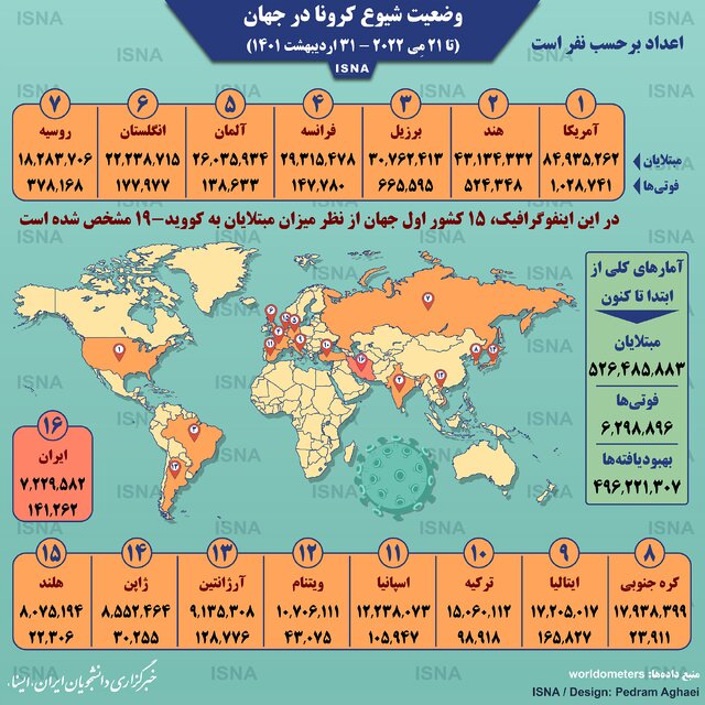 آمار کرونا در جهان تا ۳۱ اردیبهشت " اینفوگرافیک "