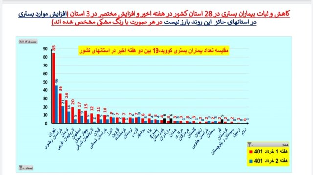 در عین حال بر اساس اعلام وزارت بهداشت، در هفته اخیر کاهش و ثبات بیماران بستری در ۲۸ استان کشور و افزایش مختصر در سه استان گزارش شده است.