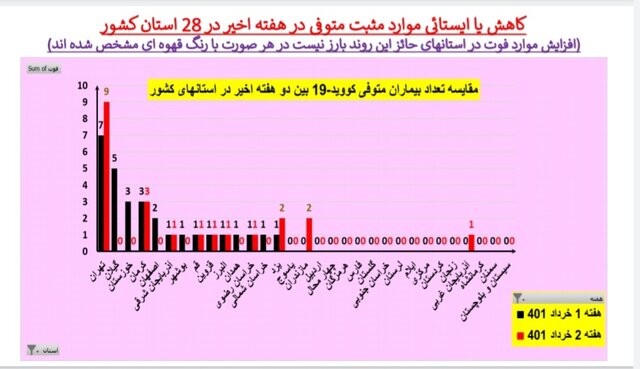 همچنین در هفته اخیر کاهش یا ایستایی موارد مثبت متوفی در ۲۸ استان را شاهد بودهایم.