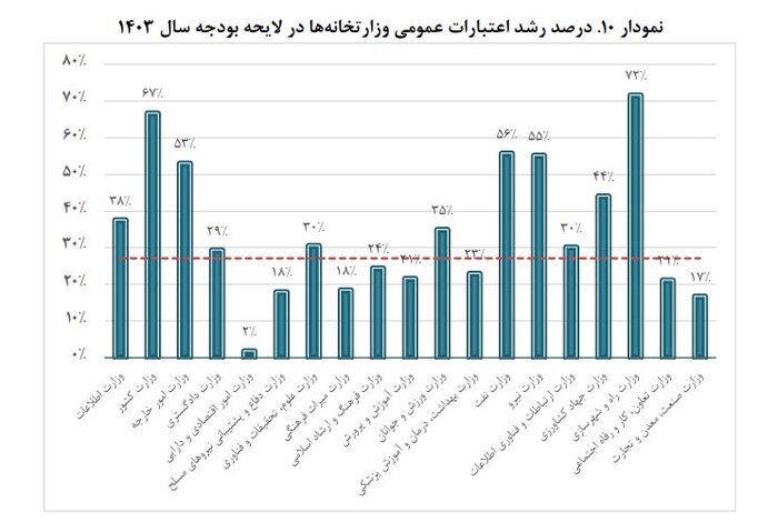 به گزارش پایگاه خبری پزشکان و قانون (پالنا)، بودجه دستگاههای اجرایی کشور حدود سه چهارم از کل بودجه سالانه دولت را به خود اختصاص میدهد که بر اساس برآوردها این بخش از لایحه بودجه سال ۱۴۰۳ در مقایسه با قانون بودجه سال ۱۴۰۲ نزدیک به ۲۹ درصد رشد داشته و به ۲۱۸۳ هزار میلیارد تومان رسیده است.