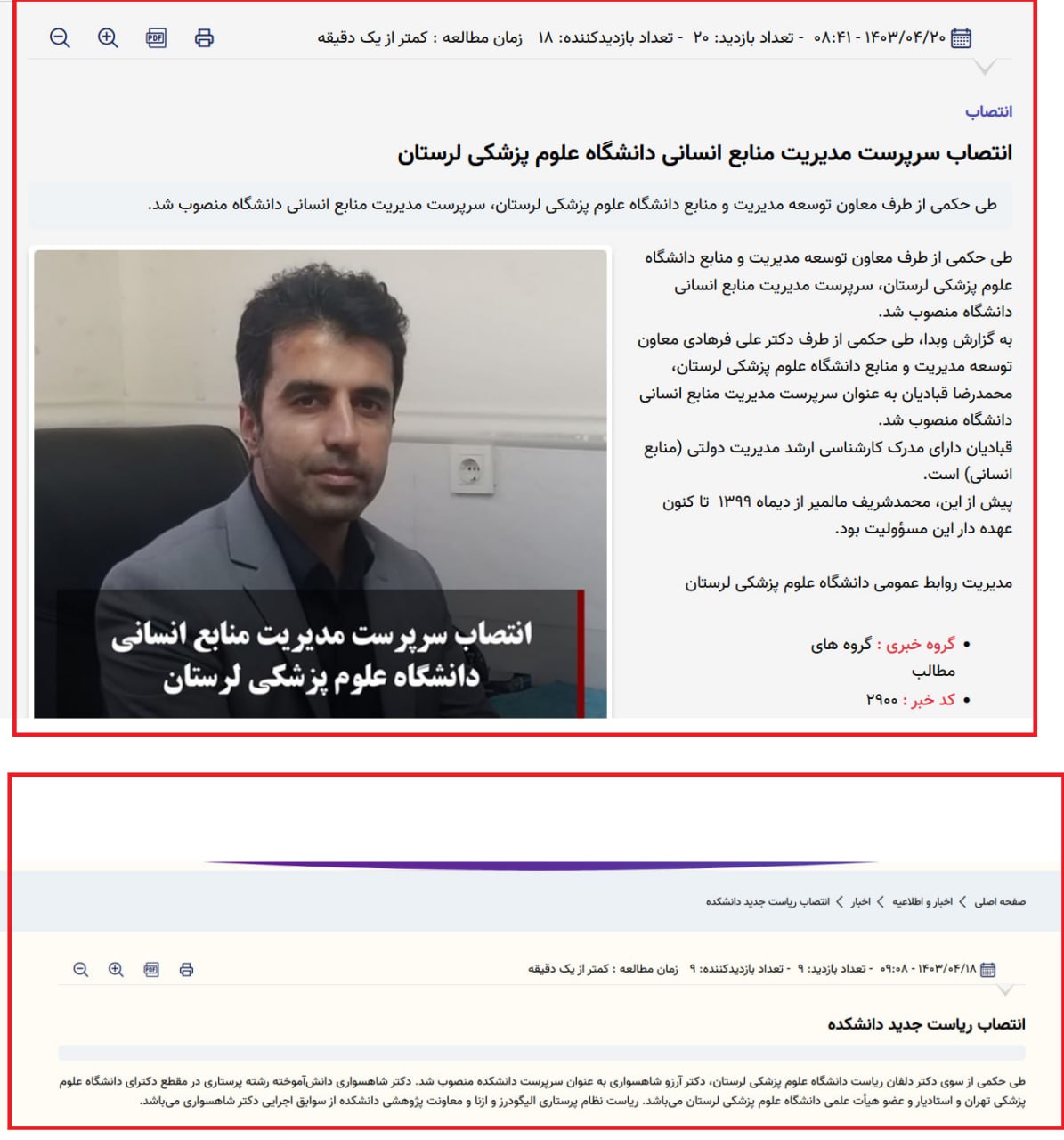 سوال از وزیر بهداشت کنونی و رئیس دانشگاه علوم پزشکی لرستان این است که آیا دستور و نامه سرپرست نهاد ریاست جمهوری و رئیس جمهور منتخب را ندیدید؟