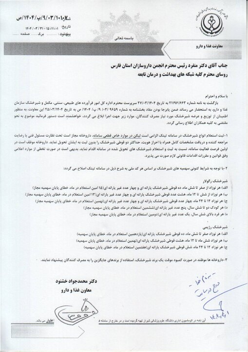 در نامه‌ای که داروخانه‌ها دریافت کرده‌اند، جزئیات سهمیه جدید شیرخشک نوزادان، اعلام شده است. مهر